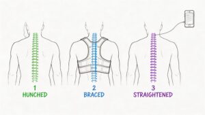A parent notices one shoulder sits higher in the school photo. A teenager says their back looks “twisted” in the mirror. An X-ray follows, then